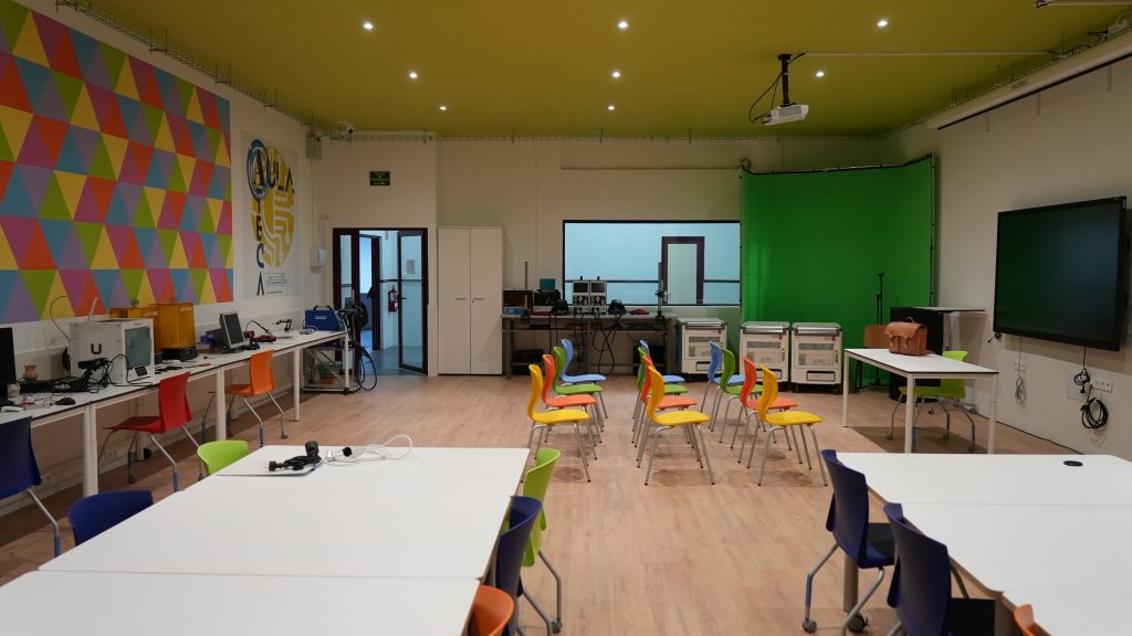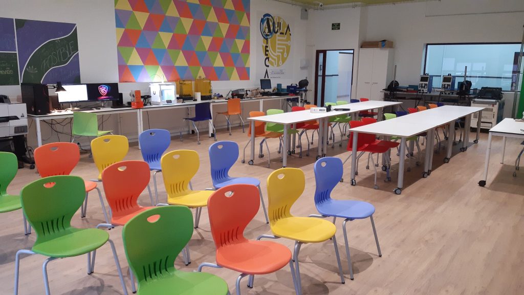 Es un aula que nace con la vocación de servir como entorno de aprendizaje renovado y adaptado a las necesidades actuales del mercado laboral, con espacios de trabajo diferenciados y con una clara capacidad de acercamiento a la digitalización y uso de las TIC, en consonancia con la actual transformación digital, reafirmando nuestro compromiso con la innovación y la implantación de las últimas y más avanzadas tecnologías aplicadas a la práctica docente.