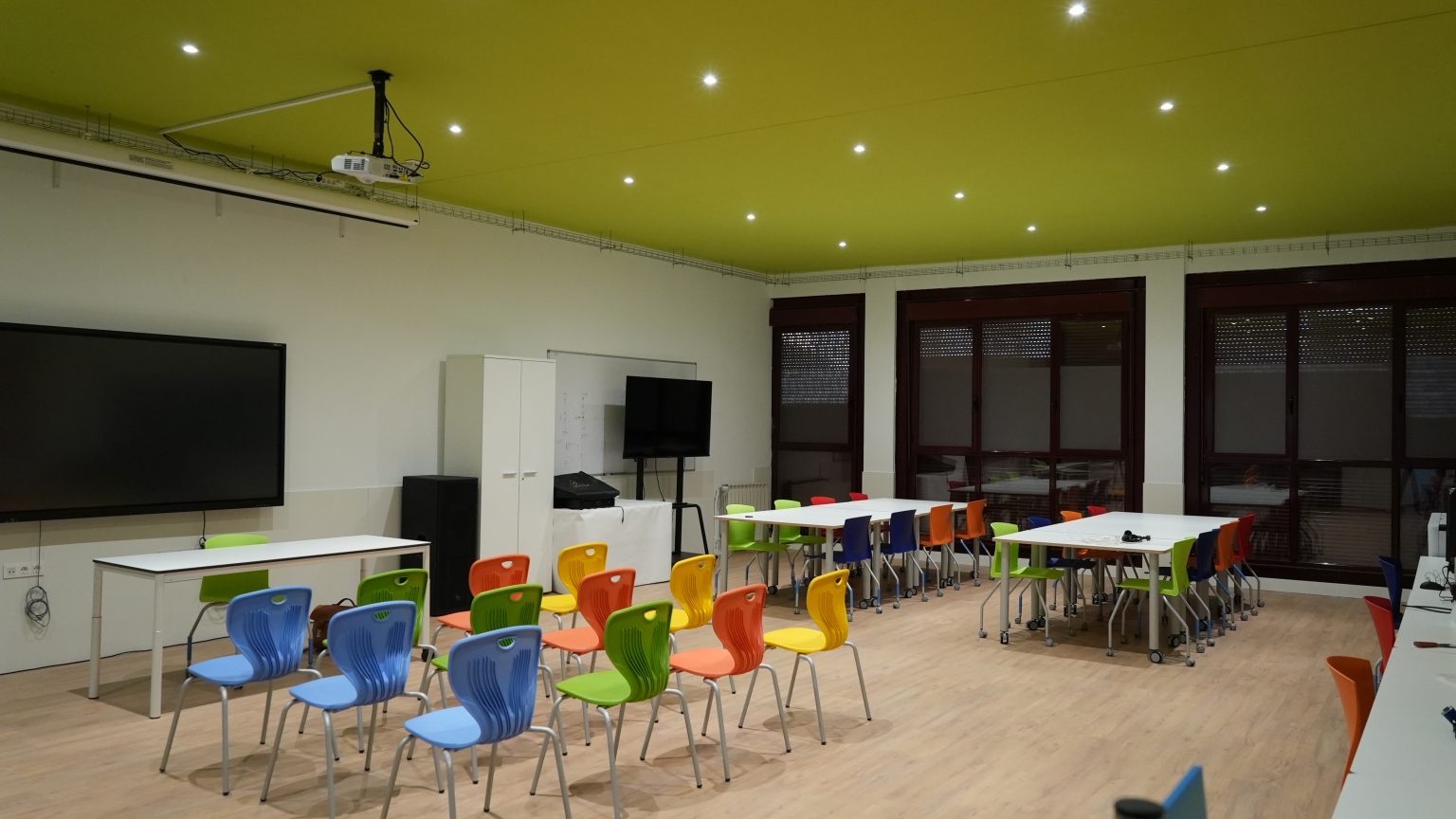 - ZONA DE EXPOSICIÓN: para la presentación pública de los trabajos y proyectos ejecutados. Consta de panel táctil, televisión y pantalla de proyección de grandes dimensiones.