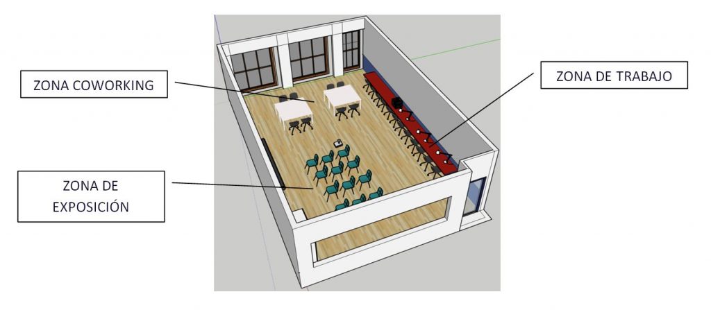 - ZONA DE COWORKING: donde los participantes en el desarrollo de proyectos puedan reunirse para compartir y analizar los diferentes aspectos del mismo.